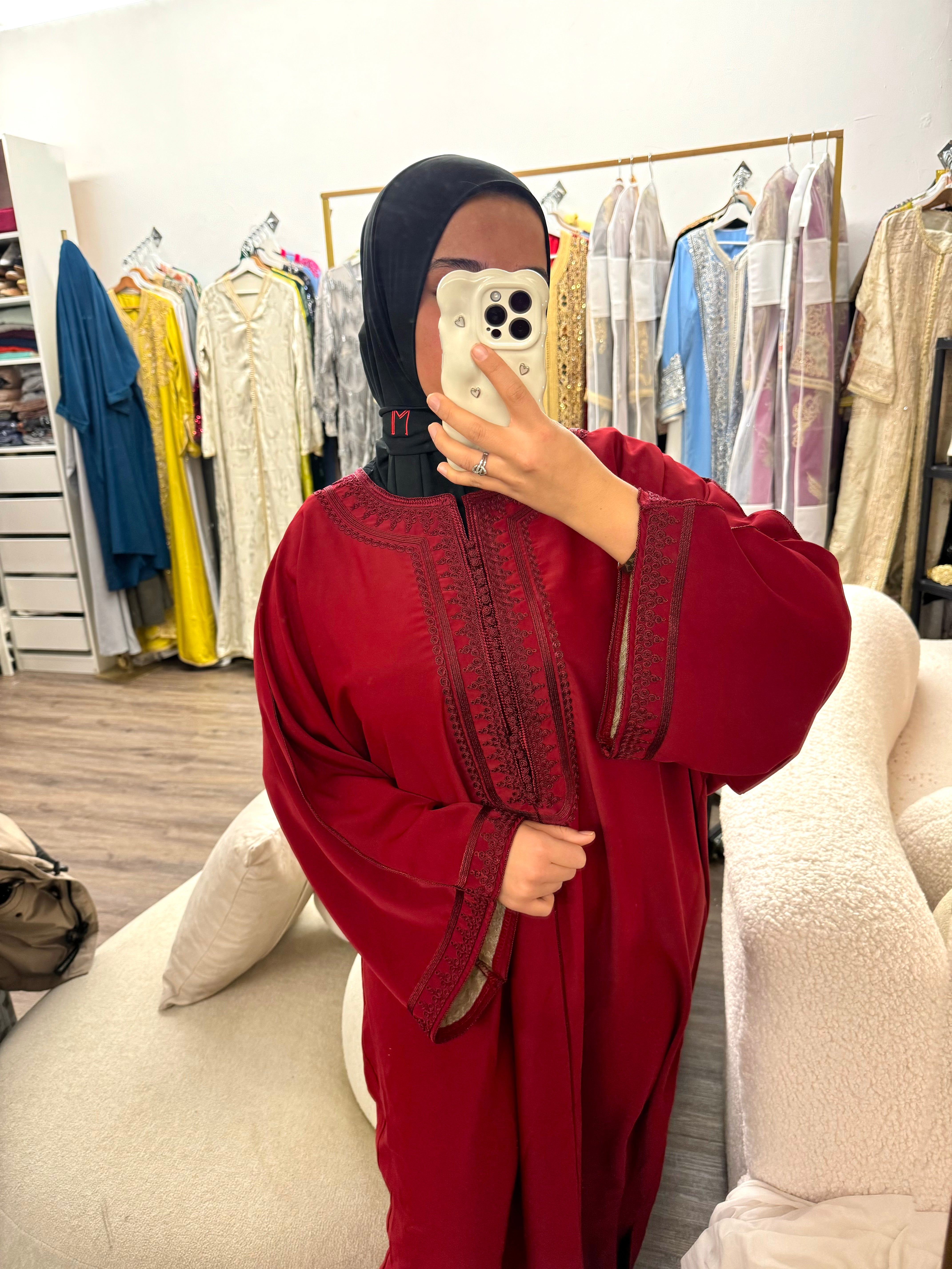 Die stilvolle und zeitlose Abaya in Bordeaux ist nicht nur perfekt für Feierlichkeiten, sondern auch für warme Sommertage